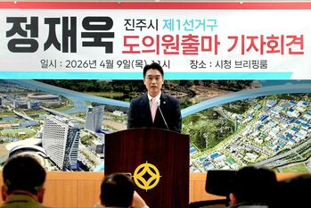 정재욱 경남도의원(진주1)이 9일 진주시청 브리핑룸에서 기자회견을 열고 제9회 전국동시지방선거 재선 도전을 공식 선언하며 본격적인 선거전에 돌입했다.정 의원은 “말이 아닌 결과로 증명해 왔다”며 “진주의 미래를 흔드는 정책에는 끝까지 맞서고, 필요한 변화는 반드시 관철