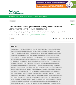 산청군의 체리 혹병 규명 사례가 국내에서는 처음으로 국제 학술지에 게재됐다.산청군농업기술센터는 지난해 지역 체리 재배 농업인으로부터 ‘나무 뿌리 부위에 혹과 궤양이 발생한다’는 진단 의뢰를 받고 시료를 확보해 김진우 경상국립대 식물의학과 교수와 협력해 정밀 검정을 실시