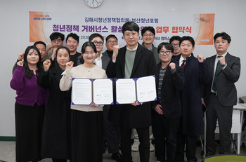 김해시청년정책협의체와 부산청년포럼이 손잡고 지방 인구 소멸 위기에 공동 대응하기로 했다.김해시 청년정책협의체와 부산청년포럼은 지난 2월27일 인제대학교 글로컬대학 허브캠퍼스에서 지역 청년정책 활성화와 협력체계 구축을 위한 업무협약(MOU)을 체결했다.이날 협약